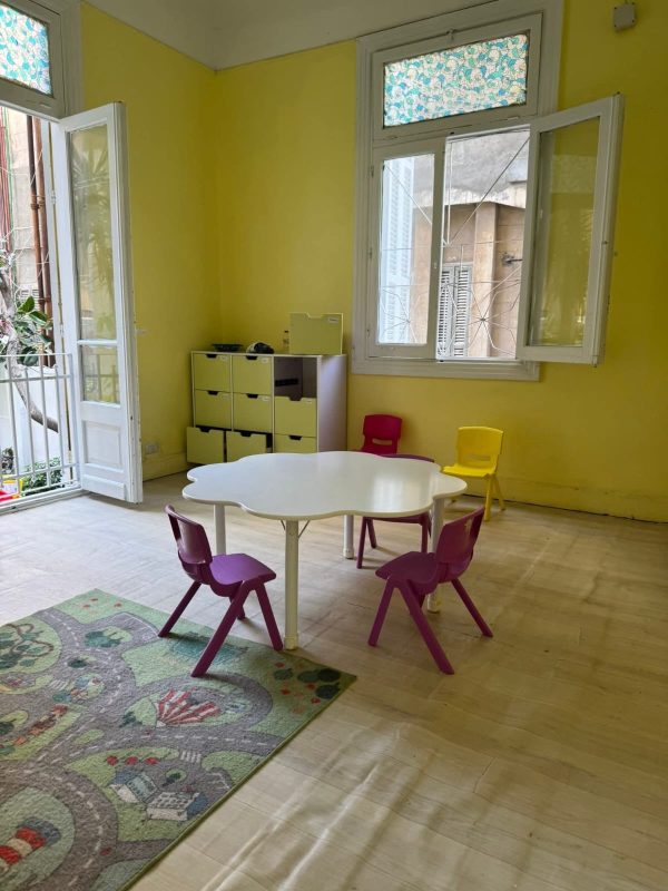 Child-sized wooden tables, chairs, and creative educational furniture.